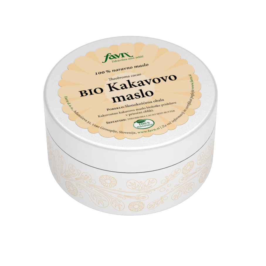 Cocoa butter has irresistible chocolate fragrance and it is widely used for naturally healing of dry, sensitive skin, as well as for making natural soaps, massage bars and other cosmetic products. It is invaluable ingredient of many face and body products, providing moisture and smoothness to the skin and protecting it from environmental damage. Cocoa butter contains cocoa mass polyphenol, which helps ease dermatitis or rash. That is why this butter is one of the few gentle ingredients in our Natali balm for sensitive skin.
